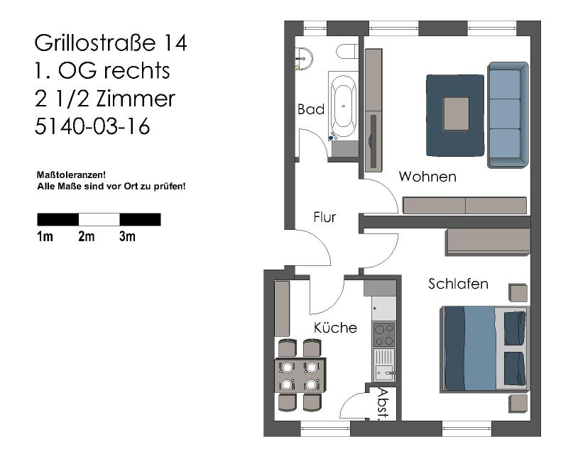Diese 2,5 Raumwohnung verfügt über eine geräumige Küche, ein Badezimmer, ein Wohnzimmer sowie über ein Schlafzimmer.