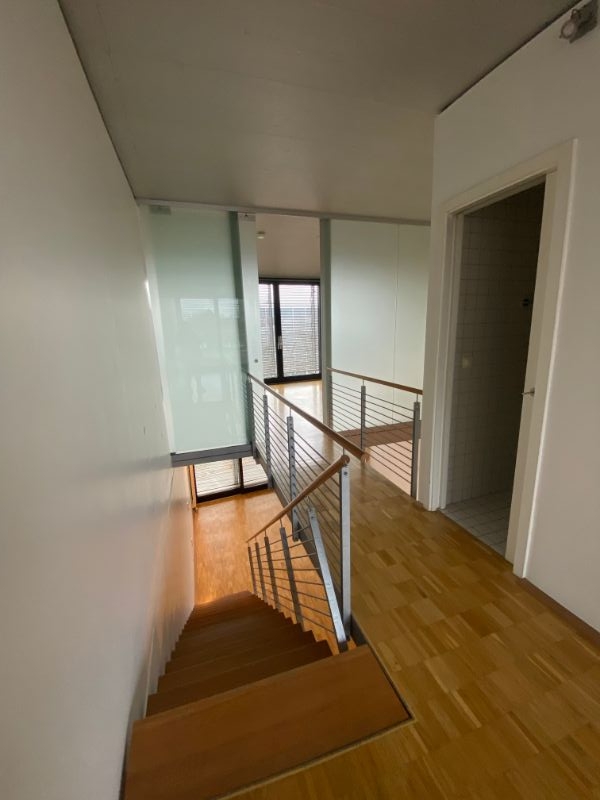 Diese extravagante Wohnung besticht durch ihre besondere Fassadengestaltung und den außergewöhnlichen Stil. Mit Schiebewänden können Sie den Wohnbereich nach Wunsch offen oder geschlossen gestalten. Betonwände und durchgehender Parkettboden ergänzen das moderne Design. Im unteren Bereich befinden sich das Gäste-WC, der großzügige Wohnraum mit angrenzender Küche und im Obergeschoss das Arbeitszimmer, Schlafzimmer sowie ein Badezimmer mit Badewanne. Die Räume sind durch eine offene Galerie verbunden. Ein Aufzug ist ebenfalls vorhanden.
