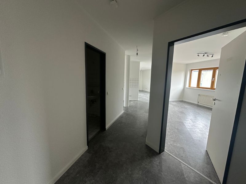 Die Wände sind tapeziert und gestrichen, der Boden ist mit einem grauen Oberboden ausgestattet.