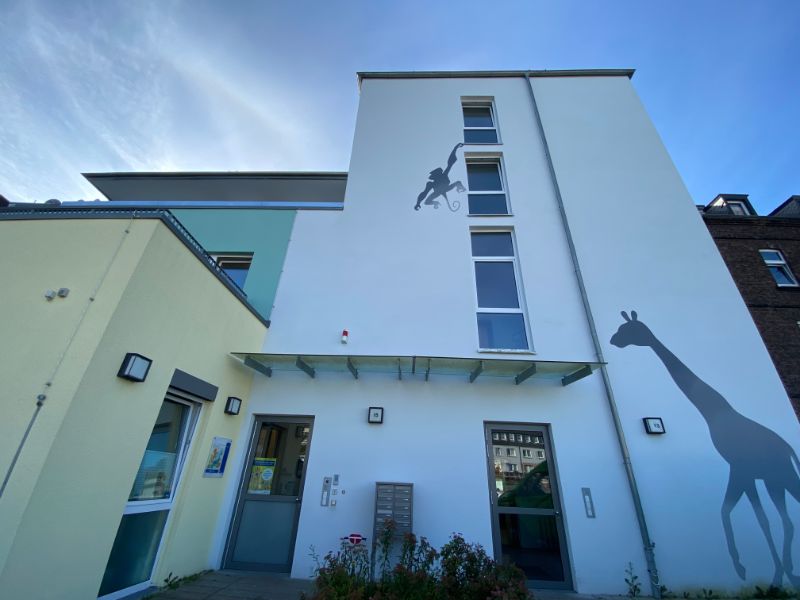 Der Neubau an der Olgastr. 13+15 zeichnet sich nicht nur durch die barrierearme Gestaltung aus, sondern ebenfalls durch die Kita im Erdgeschoss sowie im 1.Obergeschoss.